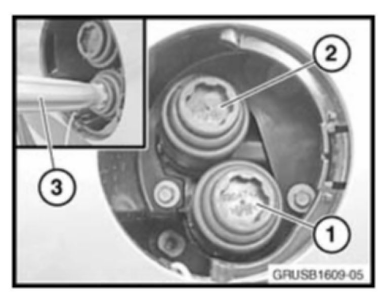 5. Connect the extraction line (1) from the tool (P/N 81 39 2 153 908) to the active (2) or the passive (3) service ports.