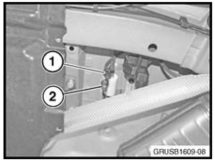 4. Remove the cover under the left rear bumper to access the service ports for the active (1) and passive tanks (2).