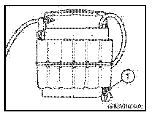 3. Remove the cap from the service port being drained, and attach the extractor hose (1) to the port.