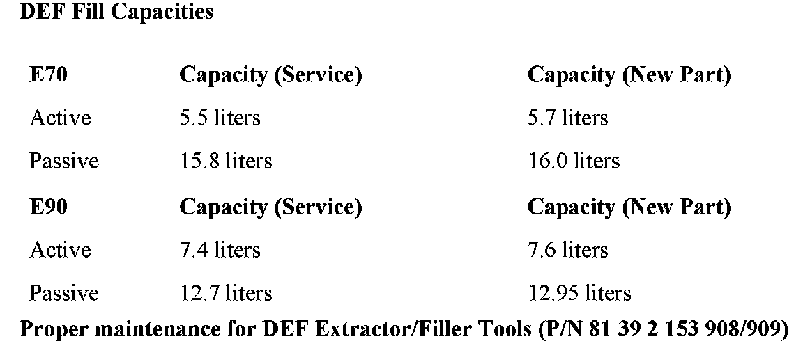 DEF FILL CAPACITIES
