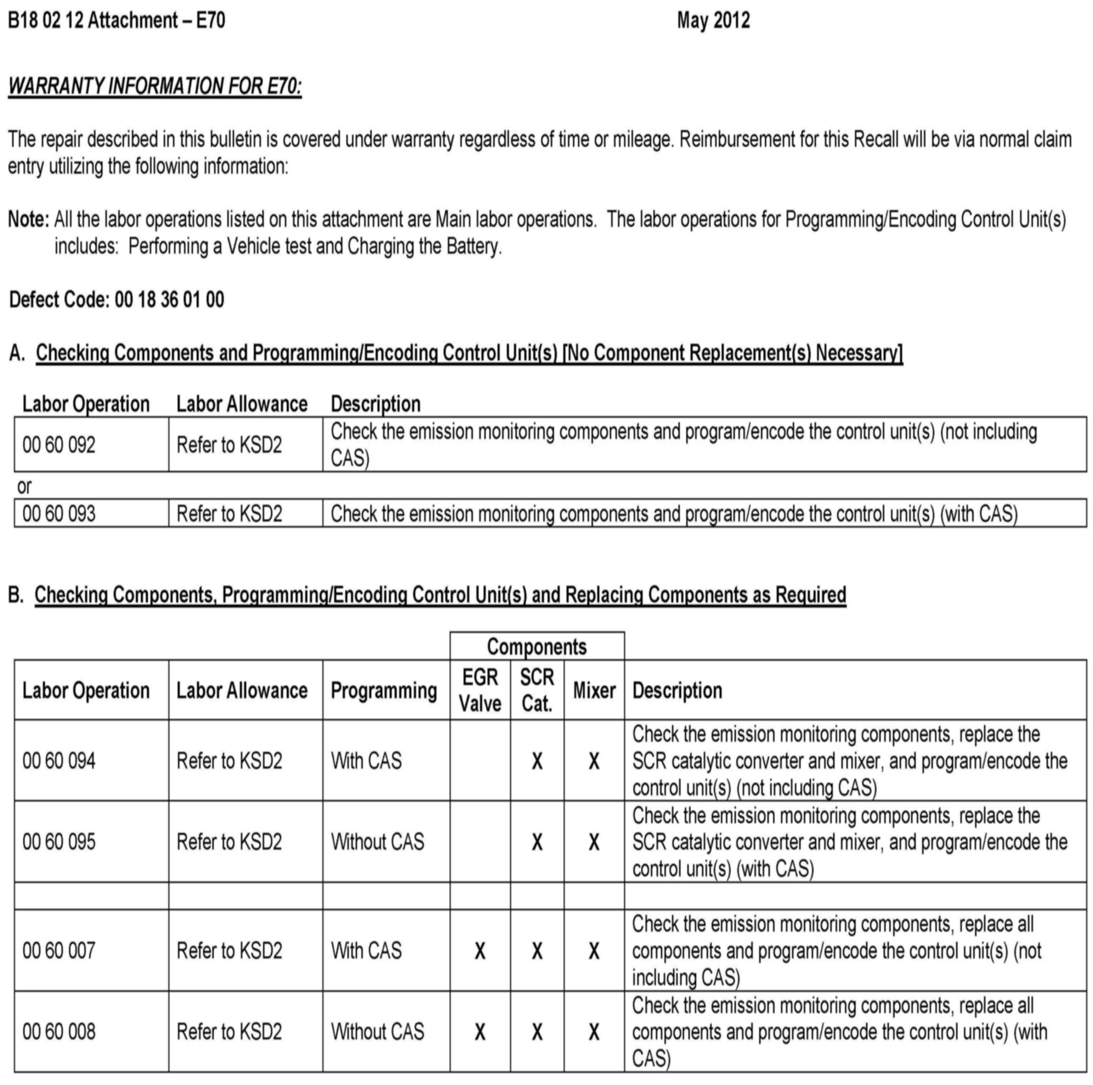 Recall 11E-A03 - Check/Repl. Emission Monitoring Components