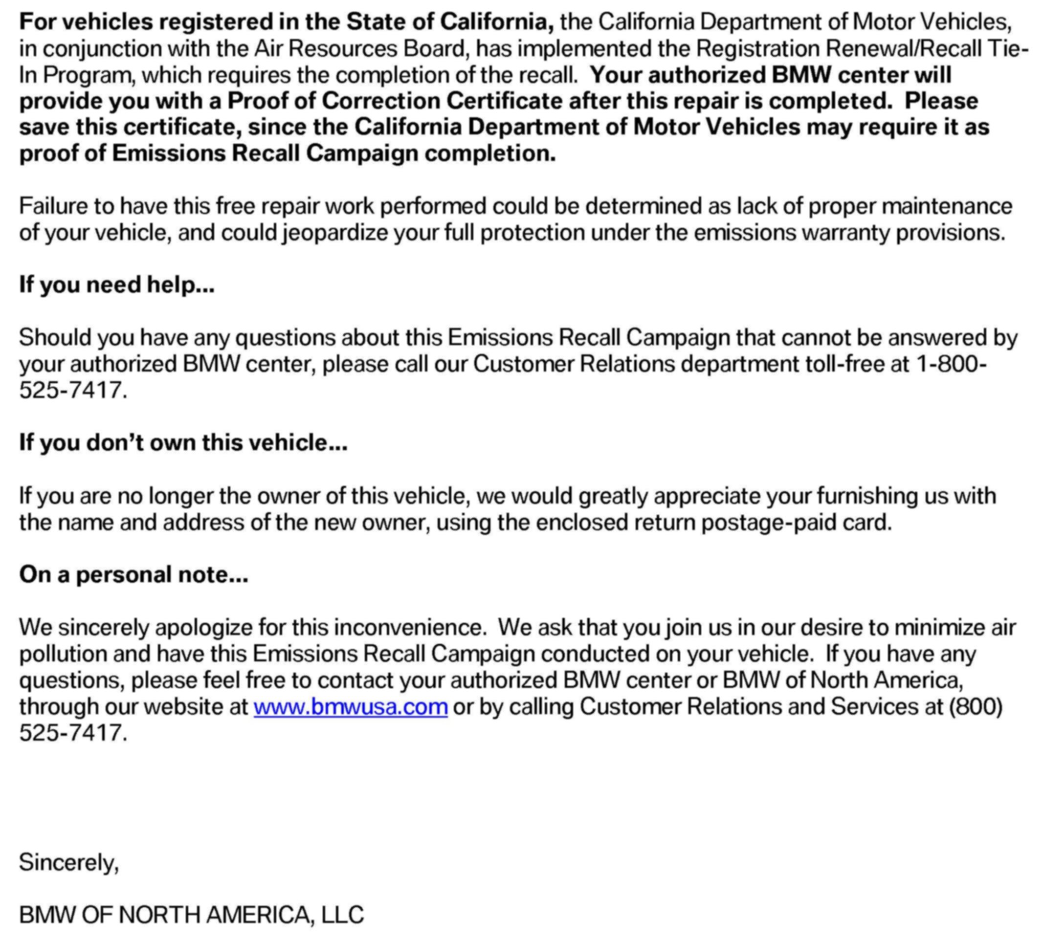 Recall 11E-A03 - Check/Repl. Emission Monitoring Components
