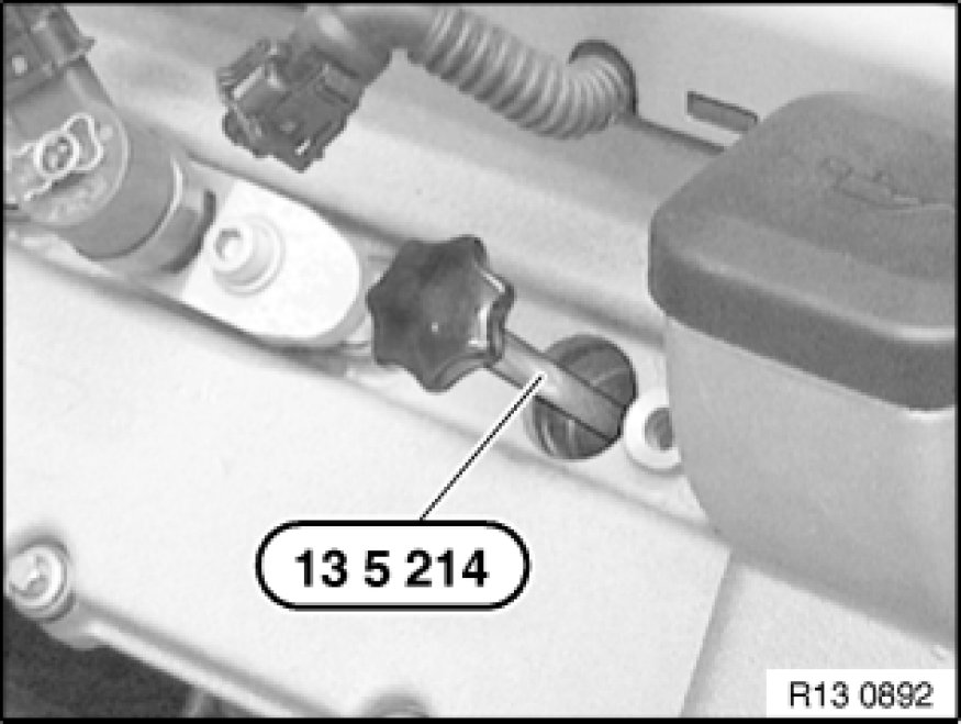 Insert special tool 13 5 210 into injector duct as far as it will go.
