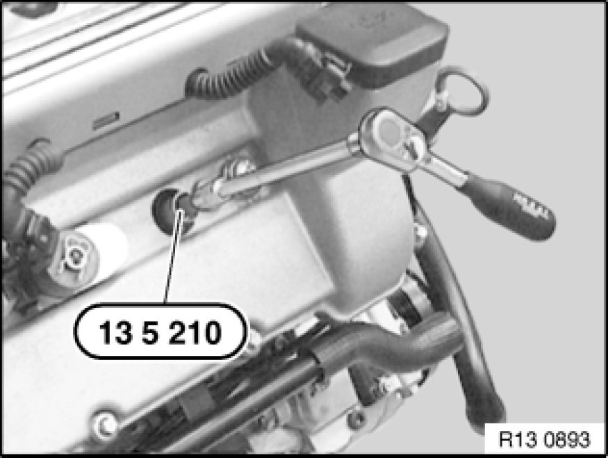 Fit socket wrench on special tool 13 5 210 and turn with slight pressure.