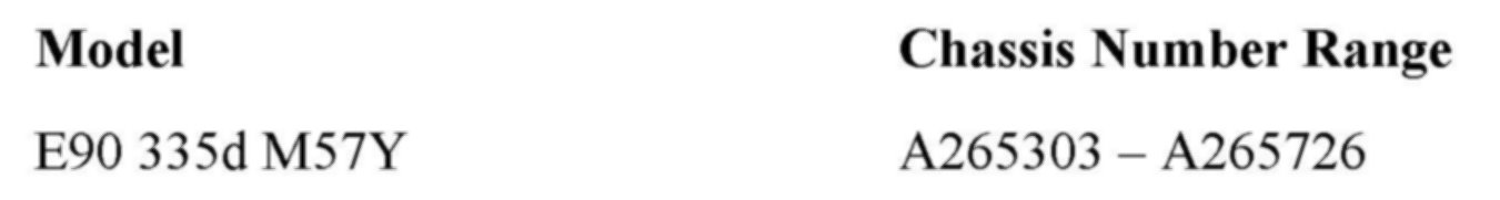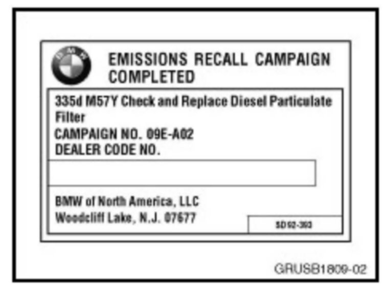 This Recall Campaign involves MY 2009 E90 335d vehicles with the M57Y engine produced from 11/12/2008 to 1/16/2009.