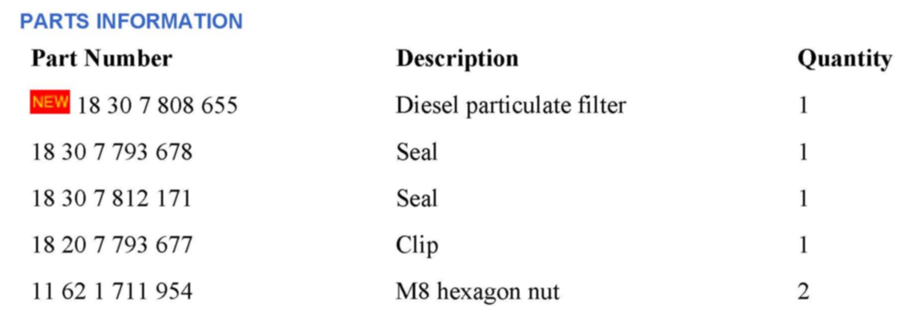 To replace the DPF, proceed as recommended in Repair Instruction RA 18 31 080 - Remove and refit/replace the diesel particulate filter (M57T2).