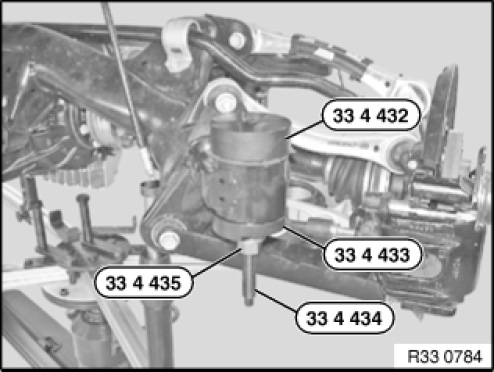 Please ensure correct support of the special tool 33 4 140 on the bearing bush of the rear axle support.