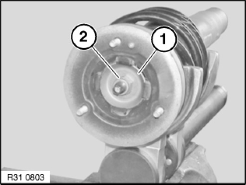 The upper and lower coils of the coil spring must be situated entirely in the recess of special tools 31 3 351.