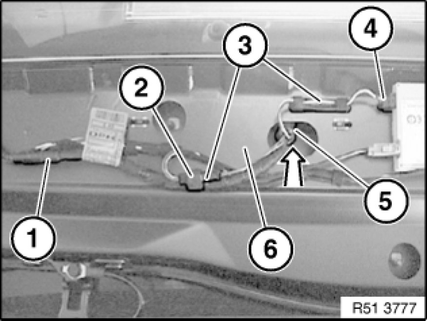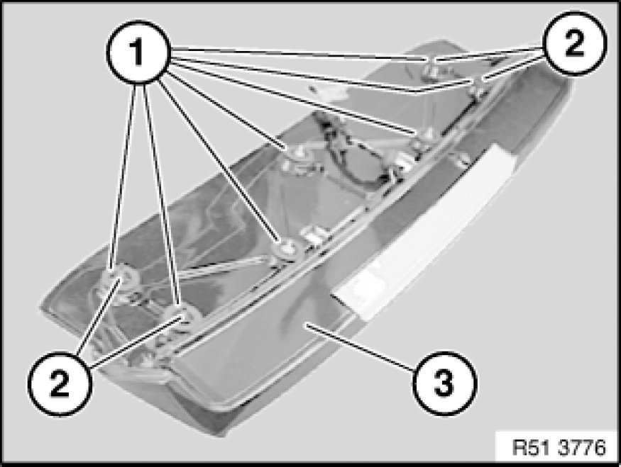Carefully remove rear spoiler (3) in upwards direction from rear lid (4) (with aid of a 2nd person) and place on a clean surface.
