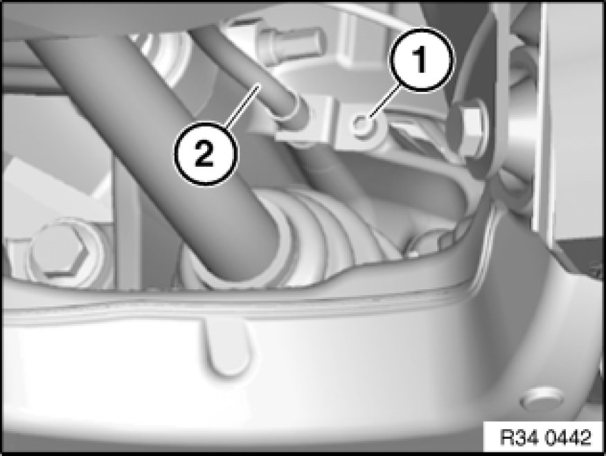 Disconnect handbrake Bowden cables (1) out of mountings (2).