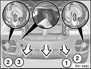 Plug connections for fog lights in area (2) and for Park Distance Control (PDC) in area (3) will be disconnected.