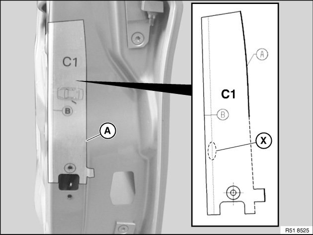 - Position seal with marking in accordance with overview below on "B" and C-pillars.