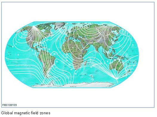 The appropriate magnetic field zone must be selected from the graphic for the relevant country. There are 15 magnetic field zones worldwide.