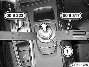 Pry off knob for controller (1) with special tool 00 9 323 and 00 9 317 in direction of arrow and remove.