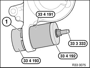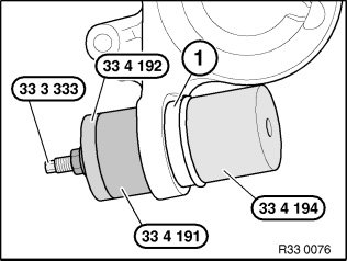 Fit new ball joint (1) with special tools 33 3 333, 33 4 192, 33 4 191 and 33 4 194.