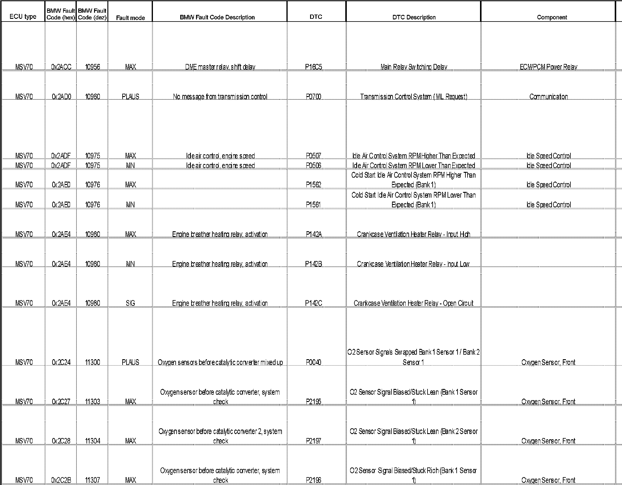 A L L Diagnostic Trouble Codes ( DTC )