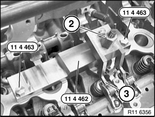 Insert special tool 11 4 463 in screw connection of cylinder head cover.