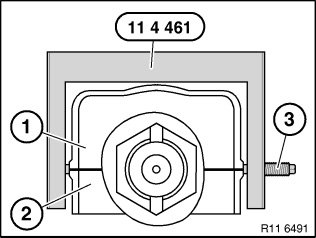 Bring thrust piece and legs of special tools 11 4 461 into contact at milled surfaces.