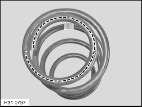 Turn coil spring until lower end of coil spring (1) points upwards.