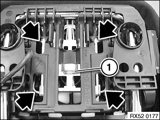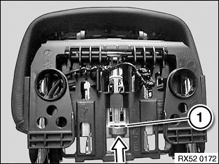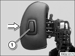 Hold pushed-together head restraint in position and push release plate (1) upwards up to stop.