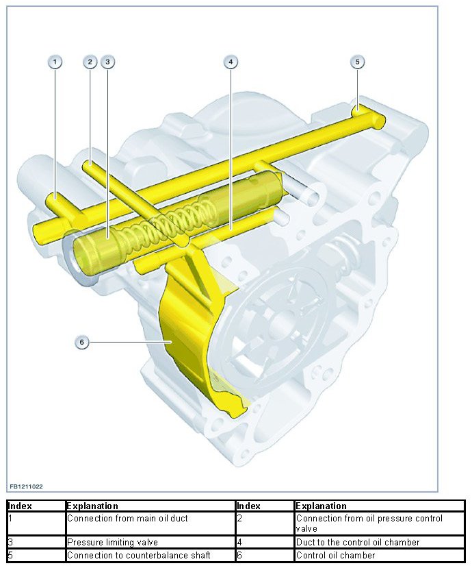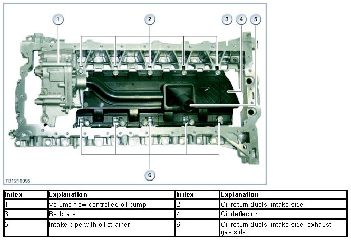 The following graphic shows the oil pressure control valve and the volume-flow-controlled oil pump on the N55 engine.