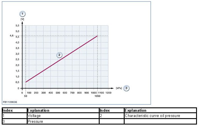 The oil pressure control valve is closed when de-energized . This means the oil circuit is automatically in the fallback level in the event of failure of the oil pressure control valve and the pressure limiting valve ensures an oil pressure of approx. 5.5 bar. During characteristic map operation, the oil pressure lies between 1.5 and 4.5 bar.