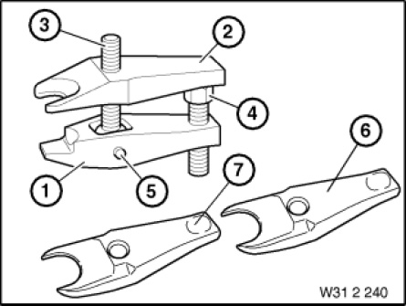 NOTE: (Extractor) For pressing off wishbone from steering stub.