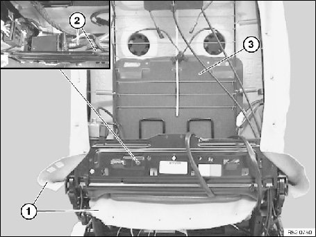- If necessary, cut all retainers on lumbar cushion (3) and spring wire.