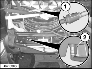 Make sure quick-connect couplings (1 and 2) are correctly seated