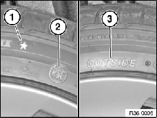 - Item (1) Marking denoting BMW-approved tyres. Ensure that only BMW-approved tyres are fitted.