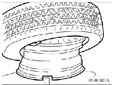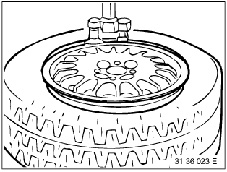 36 12 001 Replacing a tyreRefer to the operating manual of the relevant fitting equipment manufacturer for details on how to fit the tyre correctly. However, it is essential to make sure that the equipment is in proper working condition and there is no damage to the disc wheel or the tyre.