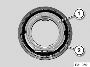 The installation protective ring (1) serves to protect the sealing lips on shaft seal (2) when the output shaft is being installed.