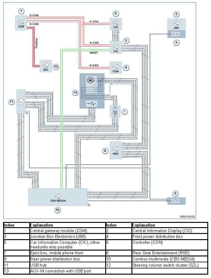 The Combox (CBX-MEDIA) is a MOST device (CBX-ECALL is a CAN control unit).