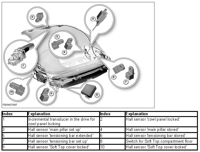 The Hall sensors deliver the signals to the Soft Top Module (CVM). The CVM uses the signals to determine the position of the Soft Top.