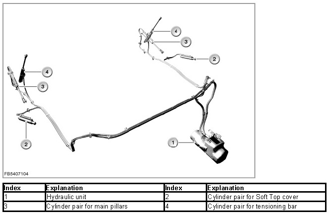 The Soft Top drive unit (motor with hydraulic pump and valve block) drives all Soft Top movements via 3 cylinder pairs.