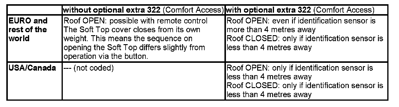 In the case of vehicles with optional extra "Comfort Access", the Soft Top can be opened and closed via the identification sensor.