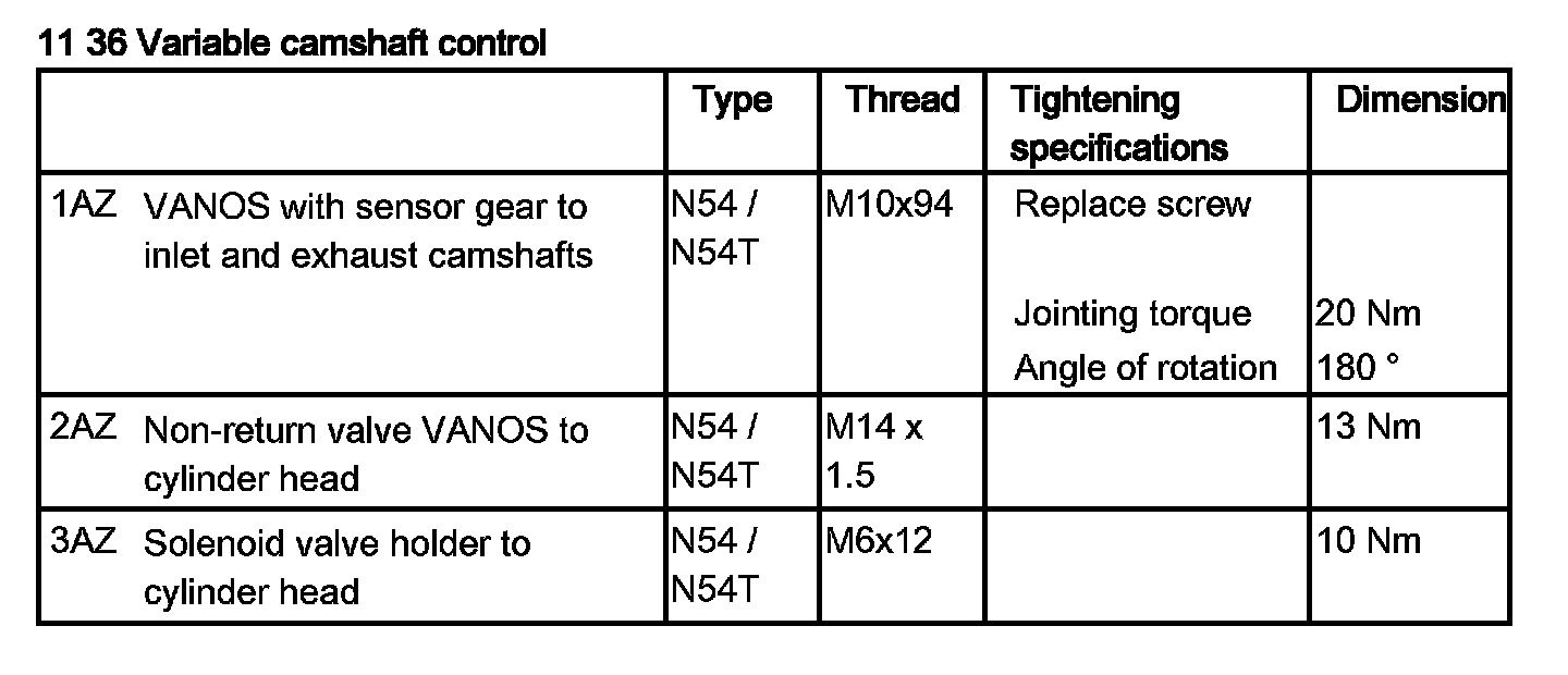 Tightening torque 11 36 3AZ.