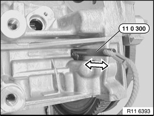 Tighten screw (1) for oil pump triangular drive with special tool 11 8 640.