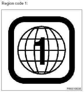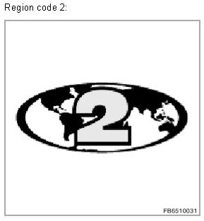 The illustrations below provide examples for region code 1 and region code 2. The region codes 3 - 5 have precisely the same appearance, except in that the numbers 3, 4 or 5 take the place of 1 and 2.