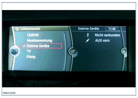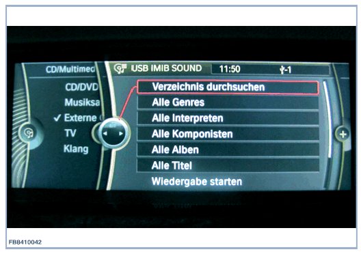 NOTE: Only perform the USB tests with the USB cable provided in the scope of delivery of the IMIB. Always perform USB tests directly at the USB connection of the vehicle! Do not use extension cables, USB hubs etc.