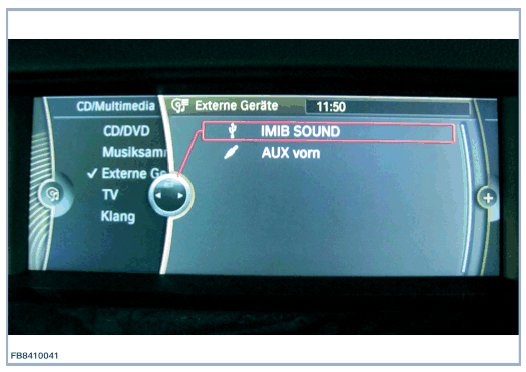 NOTE: On completion of the test, data exchange between vehicle and IMIB is terminated automatically. The IMIB is longer shown on the display of the vehicle as IMIB SOUND.
