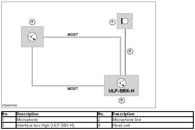 Depending on the vehicle equipment, the vehicle equipment is connected to different control units. The microphone signals are then transferred across the MOST bus to the other control units.