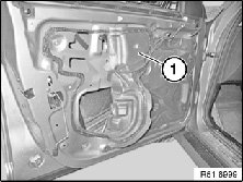 NOTE: To remove door lock, move rear section of sound insulation (1) toward centre.