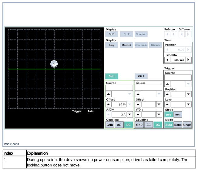 A door lock with preliminary damage cannot be distinguished from an intact door lock. At the moment, a door lock with preliminary damage remains fully functional, with there is a high probability that it will fail. No intact door lock may be renewed. A door lock with preliminary damage must be renewed. The preliminary damage to a door lock can only be determined by measuring the power characteristic curve using an oscilloscope.
