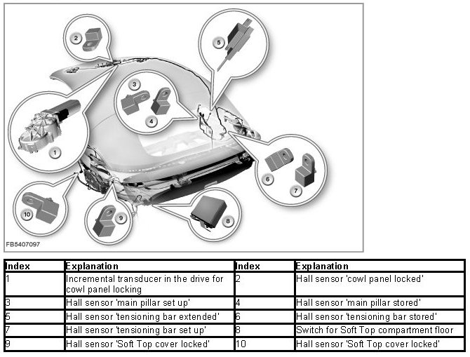 The Hall sensors deliver the signals to the Soft Top Module (CVM). The CVM uses the signals to determine the position of the Soft Top.