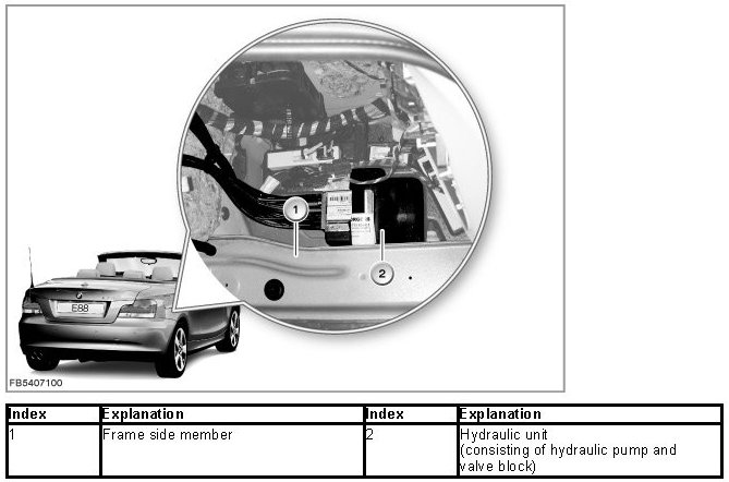 The hydraulic unit is installed in the rear right of the luggage compartment. For acoustic reasons, this is maximum distance away from the driver.