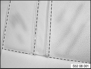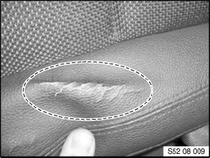 - For damaged airbag seams (sewed in) on the cover of the seat backrest or the door trim panel, the affected component must be replaced.