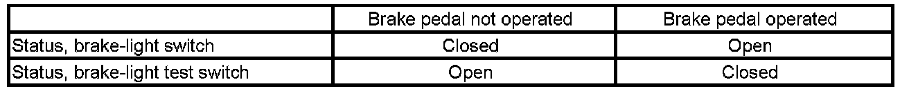 The two signals of the brake-light switch behave with respect to each other in accordance with the following table: