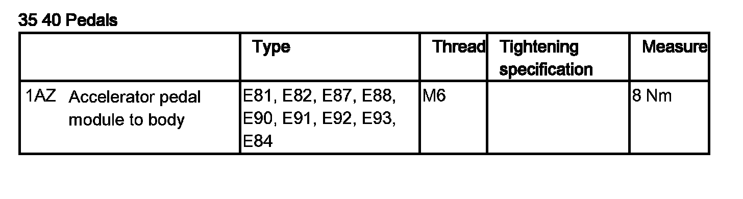 Accelerator Pedal: Specifications