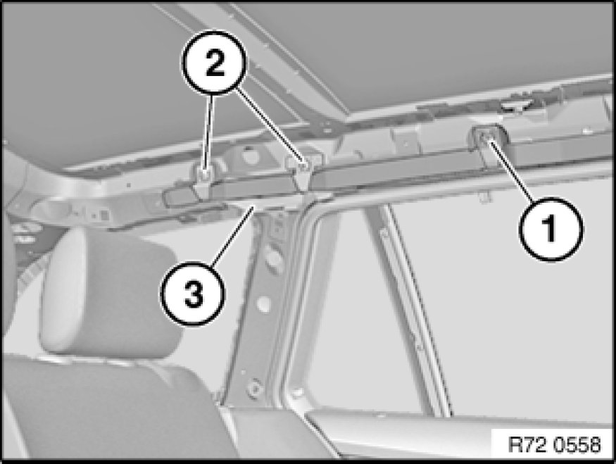 - Remove roofliner 51 44 013 Removing and Installing/Replacing Roofliner (on Version With Panorama Sunroof)